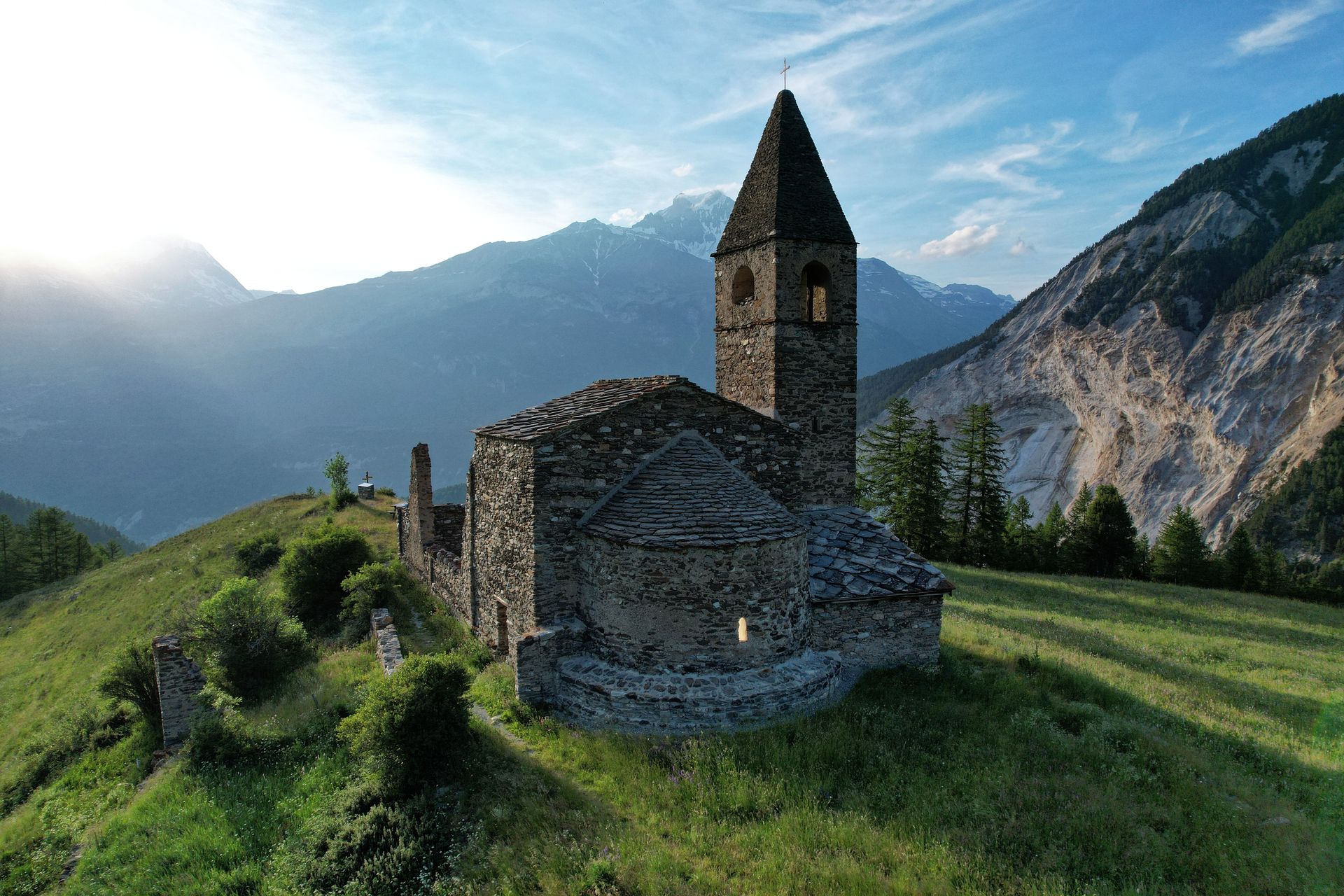 Campagne d'acquisition mixte (sol et drone) visant à documenter l'état actuel de cet édifice patrimonial isolé.